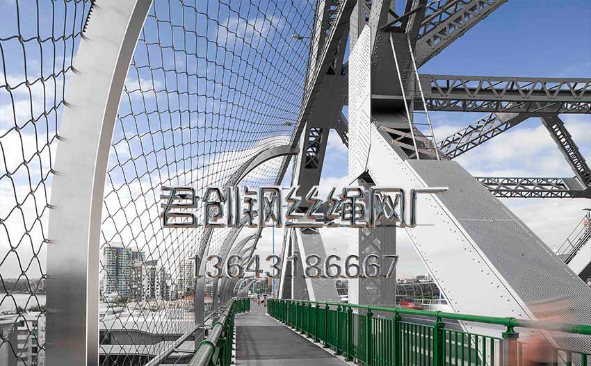 不銹鋼橋梁防護網-吊橋專用圍網防護網-軟橋側邊圍網,君創不銹鋼繩網廠家專業銷售供應。